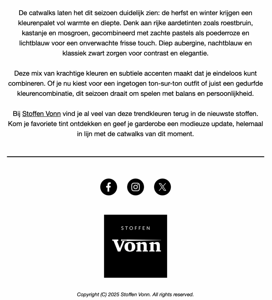 Informatie over Atelier Vonn, modeweetjes en data van workshops ontvangen? Meld je aan voor onze gratis nieuwsbrief via de website van Stoffen Vonn/Nieuwsbrief
